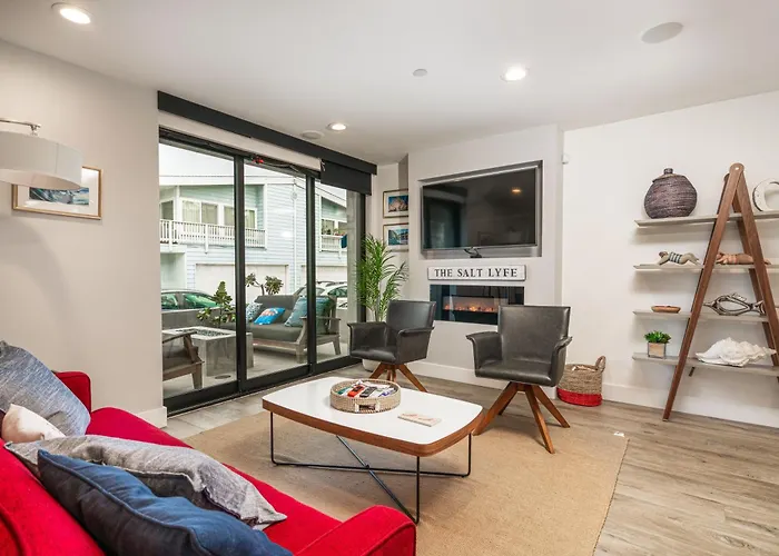 ベッドルーム4室のニューポート・ビーチ Pier To Pierヴィラから歩いて5分離れたバルボア・ファン・ゾーンなど、市内のさまざまな観光スポットへ行きやすいところにあります。 Wi-Fiと駐車場を提供する別荘は、カスタウェイズ・パークから2.2km離れた所です。